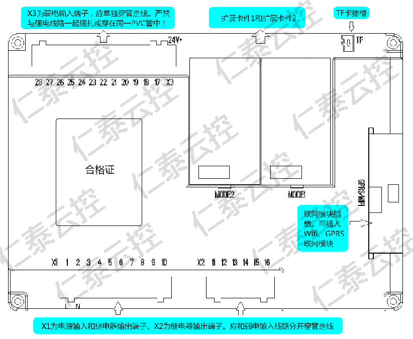 控制輸出線請(qǐng)根據(jù)受控電器的功率選用適當(dāng)截面積的銅質(zhì)多股軟導(dǎo)線,應(yīng)注意端子接線的牢靠,否則通電后容易導(dǎo)致端子發(fā)熱燒毀。