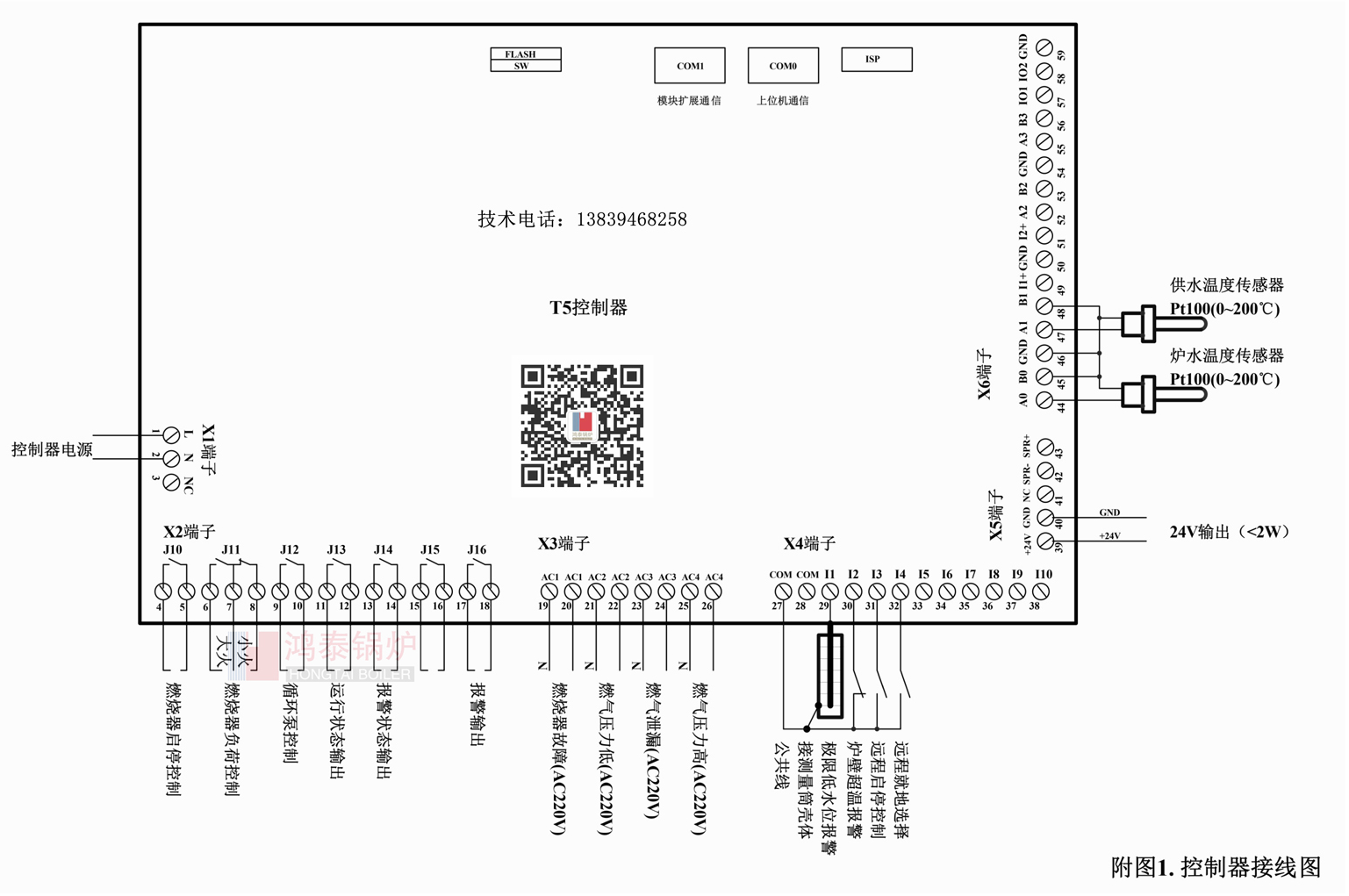 ① 燃燒器控制輸出為繼電器常開觸點的兩端,無電源輸出。