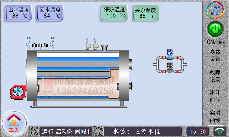 ”,進(jìn)入運(yùn)行狀態(tài),控制器根據(jù)開始控制燃燒器或加熱組的啟停和水泵等設(shè)備啟停。
