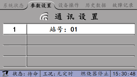 進(jìn)入“通訊設(shè)置”界面后,光標(biāo)默認(rèn)選中通訊參數(shù)“站號(hào)”。